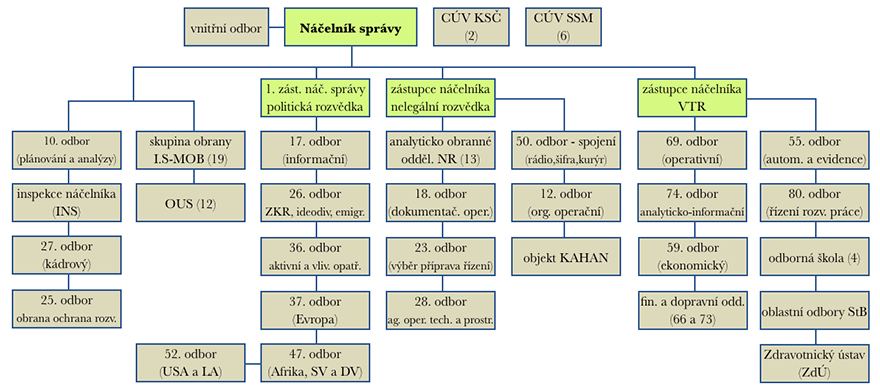 Struktura I. správy SNB po poslední reorganizaci v roce 1988