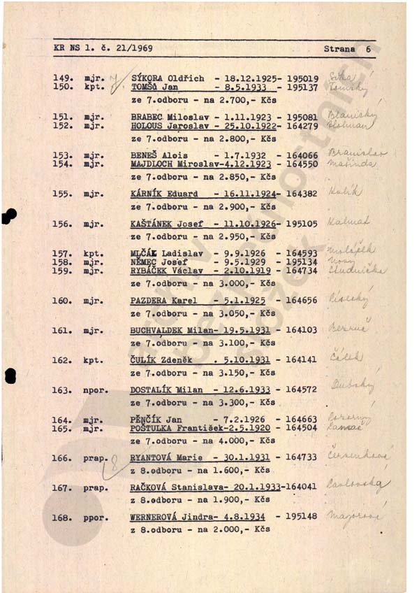 Personální stav 22. odboru (7. odboru) v r. 1963, resp. 1969